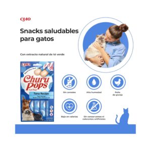 CHURU Pops Receta de Atún (4×15 gr) – Alimento Complementario en Snack Cremoso y Masticable para Gatos Adultos