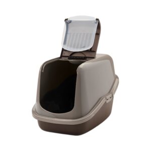 SAVIC Nestor Gris Cálido y Marrón Chocolate (56x39x38,5 cm) – Arenero Cerrado para Gatos con Puerta Frontal Abatible