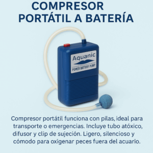 - 💨 Mantiene la oxigenación del agua en viajes o cortes eléctricos.