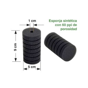 - M: Filtro de esponja + repuesto, medida 9,1 x 5 cm