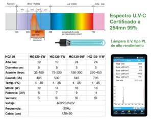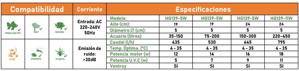 - Modelos UV disponibles: 5W, 7W, 9W, 11W