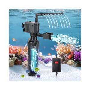 Dispositivo multifuncional: El Filtro UV Interno Hygger es un dispositivo multifuncional diseñado para garantizar un entorno acuático limpio, sano y visualmente claro. Gracias a su sistema de filtración dual y tecnología UV-C de 253,7 nm, combate eficazmente los brotes de algas y mejora la oxigenación del agua, proporcionando un ecosistema equilibrado tanto en acuarios de agua dulce como salada.