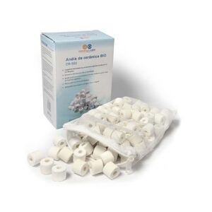 - Beneficios: Filtración biológica avanzada, superficie colonizable micro-porosa, eliminación de nitrógeno, equilibrio microbiano estable