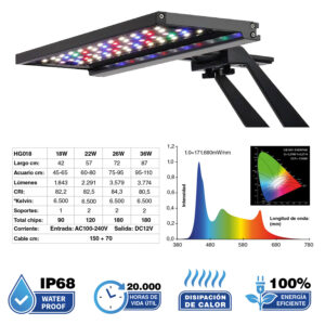La Pantalla LED WRGB Hygger HG018 es ideal para acuarios plantados de requerimiento medio.