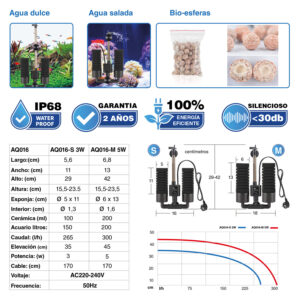 - Práctico: Es fácil de montar y usar, y los múltiples complementos ofrecen una adaptación conveniente para acuarios de tamaños diferentes.