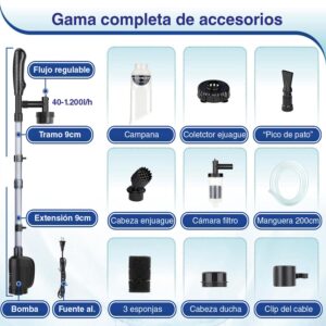 - Multi-función: Este limpiador de gravilla está diseñado para un uso versátil, incluyendo cambio de agua, retirada de residuos y limpieza de arena.