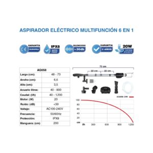 FORMATO: Aspirador eléctrico multifunción 6 en 1 (medida; largo: 48-73 cm x Ancho: 6,6 cm x Alto: 3,5 cm
