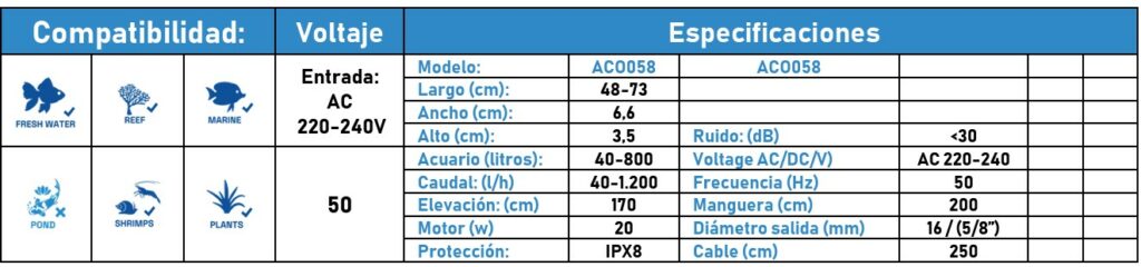 - Diseño de longitud ajustable mejorado con sus dos tubos desmontables para adaptarse a la mayoría de acuarios.