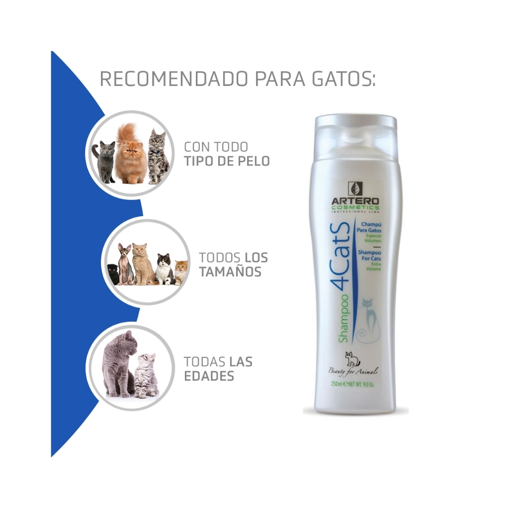 El Champú Artero 4Cats está destinado, específicamente, a gatos de todas las razas. Sus pelos tienden a necesitar un cuidado especial debido a su esencial vida gatuna.