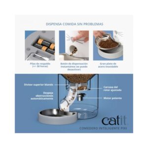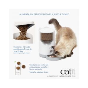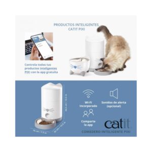 El Comedero Inteligente Catit PIXI para gatos está diseñado para dispensar la cantidad exacta de pienso para los gatos. Se ha fabricado con las últimas tecnologías y contiene un mecanismo anti-obstrucción inteligente. Puede controlarse mediante una aplicación móvil gratuita, para programar la correcta alimentación del gato.
