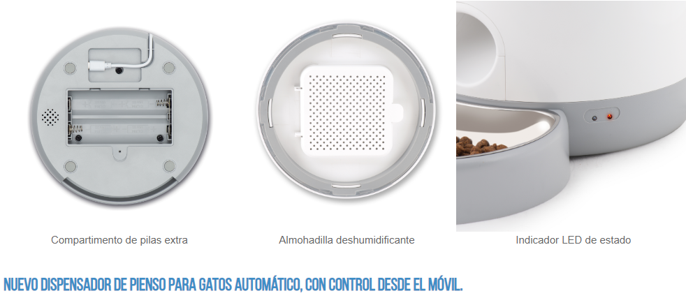 - Consume 0,25W inactivo y menos de 1W al dispensar comida
