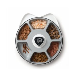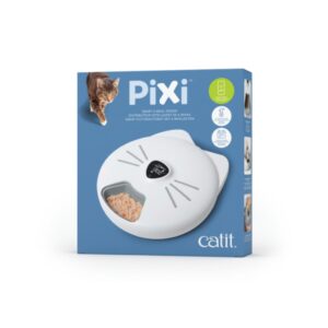 El Comedero Inteligente 6 Raciones Catit PIXI te permite alimentar a tu gato con hasta 6 comidas variadas al día, adaptándolas totalmente a sus hábitos de alimentación. Solo necesitas llenar la bandeja con porciones saludables de la selección preferida de comida seca, comida húmeda o snacks de tu gato, y el comedero servirá sus comidas diarias según lo programado en la aplicación gratuita.