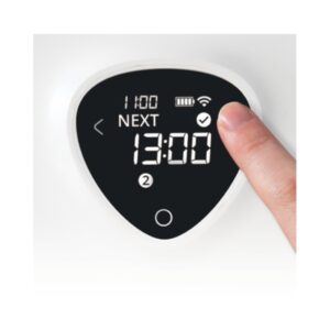 También es posible configurar y ajustar el horario de alimentación usando la pantalla en el comedero, o saltar y servir la siguiente comida.