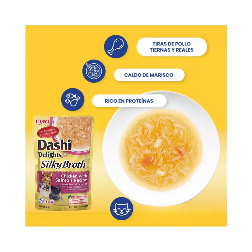- Indicado como complemento alimentario para gatos adultos que necesitan un extra de hidratación, variedad en la dieta o un alimento altamente apetecible.
