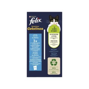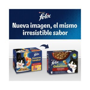 ¡Y eso no es todo! Felix Fantastic está disponible en una amplia variedad de deliciosas recetas en sabrosas gelatinas para satisfacer el gusto de tu gato por la variedad en el día a día. ¡Tienen un sabor tan bueno como su aspecto!