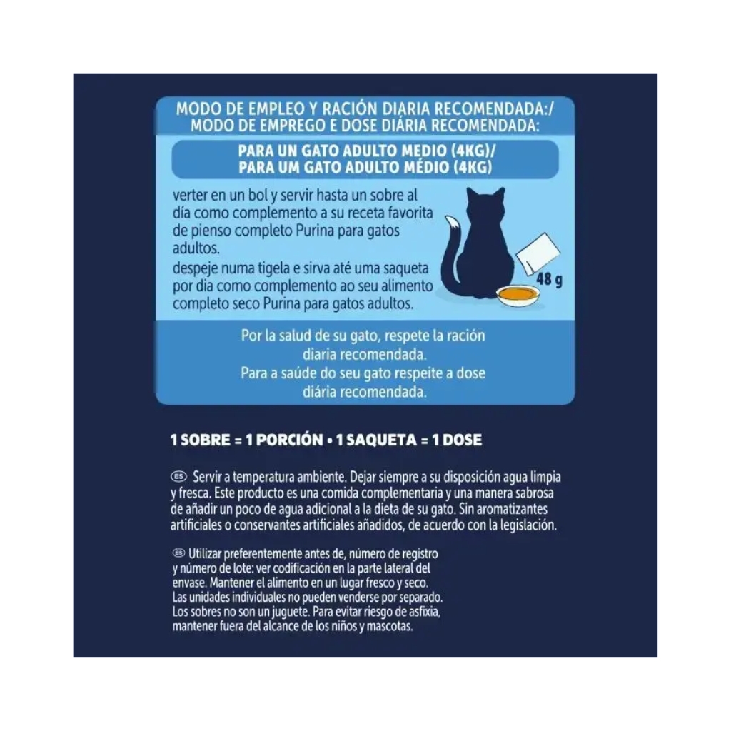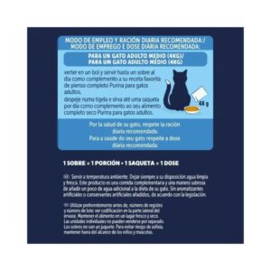 - Para un gato adulto medio (4 kg), servir hasta 1 sobre al día.