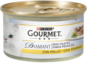 Tu gato es un auténtico experto y se merece la más refinada experiencia culinaria. Por eso, Gourmet Diamant ha creado Mini Filetitos, exclusivas recetas que harán que la comida de tu gato sea una inolvidable experiencia de sabor. Excelentes bocados de carnes o pescados, preparados con un cuidado especial y atentamente cocinados en una salsa sublime para ofrecer a tu gato con un incomparable sabor.