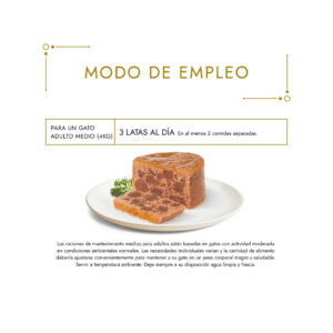 - Para un gato adulto medio (4 kg): servir 4 latas al día