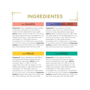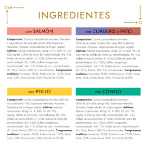 - Sabores: Salmón, Pollo, Cordero y Pato, Conejo
