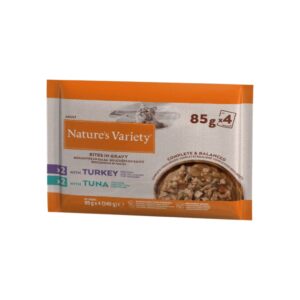 Alimento completo y equilibrado para gatos adultos. Con pavo y atún de alta calidad como ingrediente principal. Cocido al vapor a temperatura óptima en sus propios jugos para preservar mejor los nutrientes