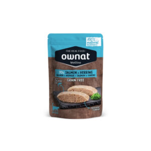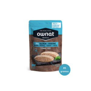 Salmón (45%), caldo (28,7%), arenque (25%), minerales, aceite de salmón, algas marinas (0,1%).