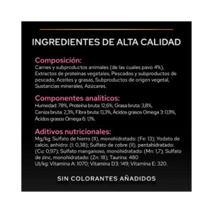 Adult Delicate Digestion con pavo en salsa es un alimento completo para gatos con digestión sensible ayuda a controlar la piel sensible gracias a niveles elevados de ácidos grasos omega 3 y 6.