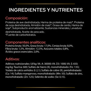- Niveles incrementados de vitamina E para reducir el estrés oxidativo.