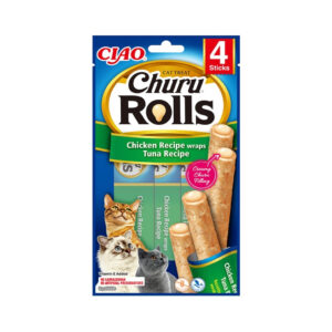 - Los rollos de Churu son dulces de pollo naturales en forma de barra suave sazonados con sabores naturales, extracto de té verde y vitamina E.