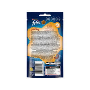 ¡Premia a tu gato más a menudo con estas chuches ligeras y comparte más momentos traviesos y tiernos con él! Felix Crispies Snacks están irresistiblemente aireados para tener una textura única, ligera y crujiente para premiar a tu gato cada día.