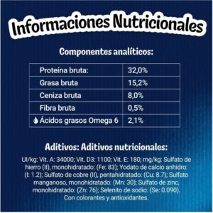 - Con proteínas, Vitaminas y Ácidos grasos Omega 6.