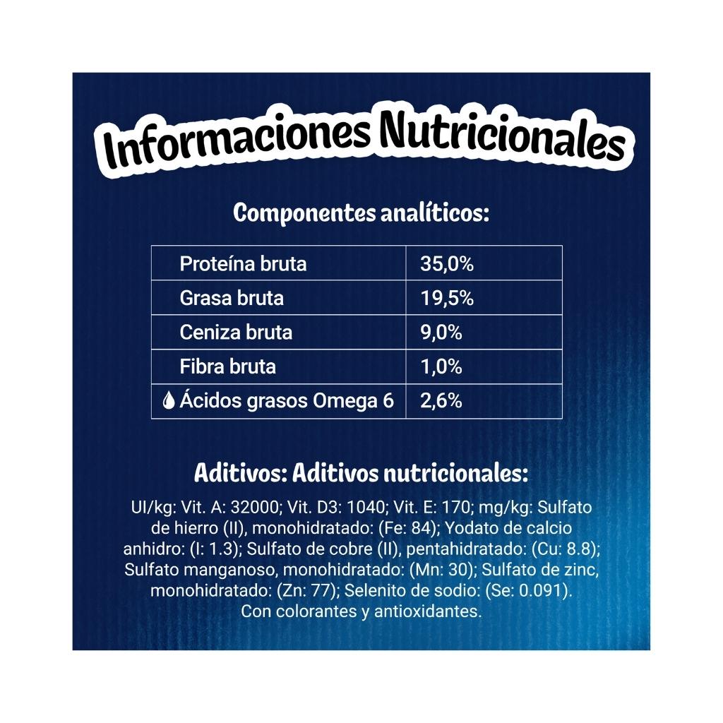 - Para un gato adulto de 4 kg: hasta 13 g diarios (aprox. 35 piezas).
