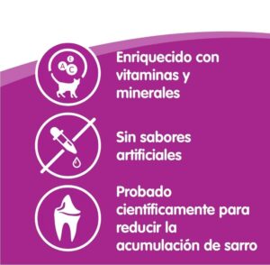 - Con una textura especial que está diseñada para limpiar suavemente sus diminutos dientes, al tiempo que reduce la acumulación de placa dental.