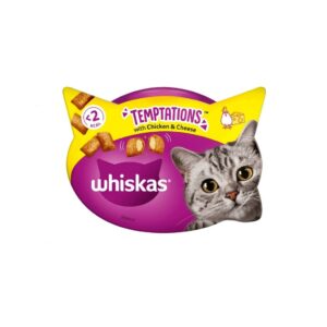 - Los snacks de premio para gatos Whiskas Temptations son unos deliciosos snacks para gato con una crujiente y sabrosa capa exterior y un relleno blando e irresistible.