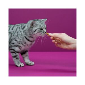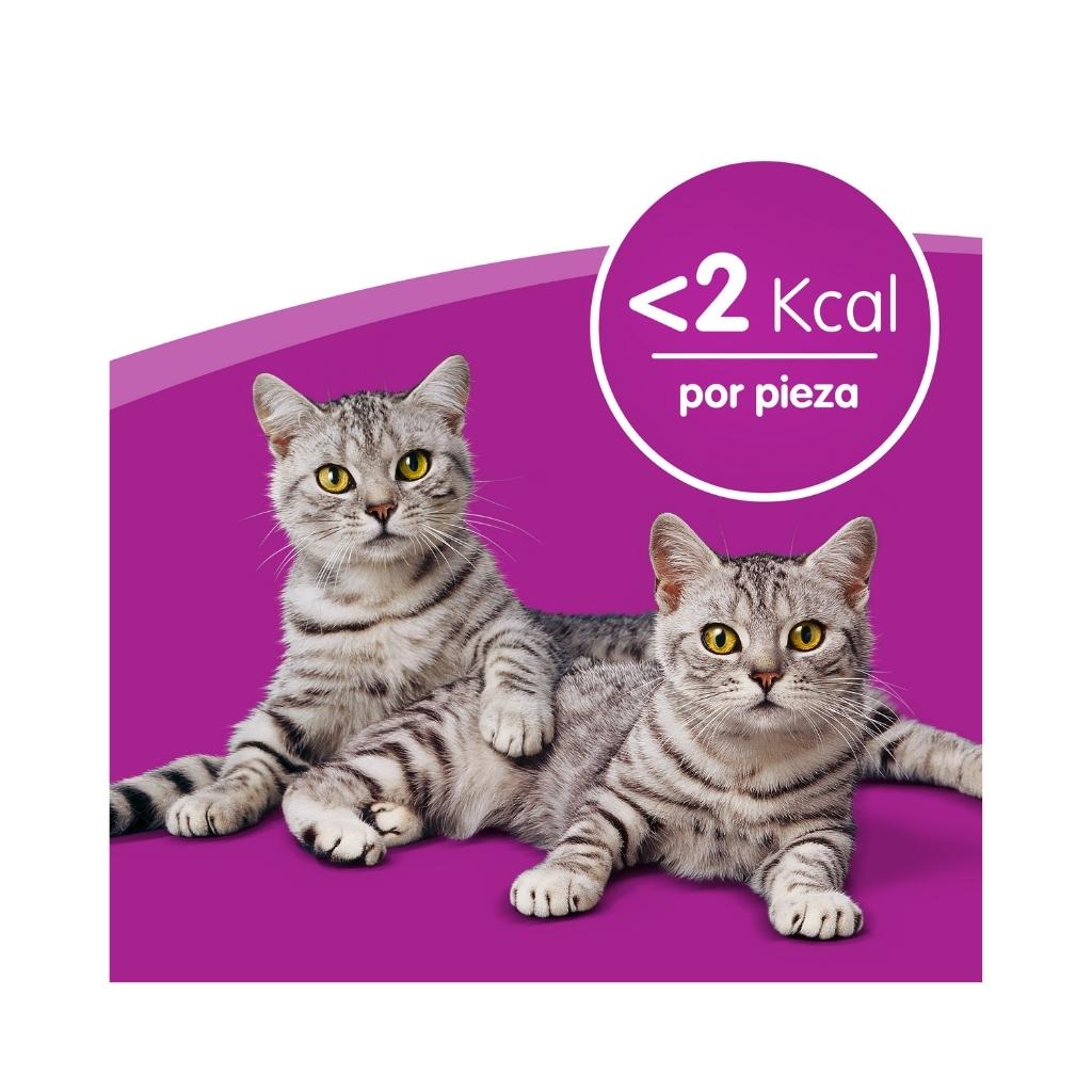 - Con una gran variedad de apetitosos sabores, que contienen un aporte adicional de vitaminas y minerales y con menos de 2 kcal por cada unidad, estos snacks son una excelente manera de darle a tu gato un premio que le encantará.