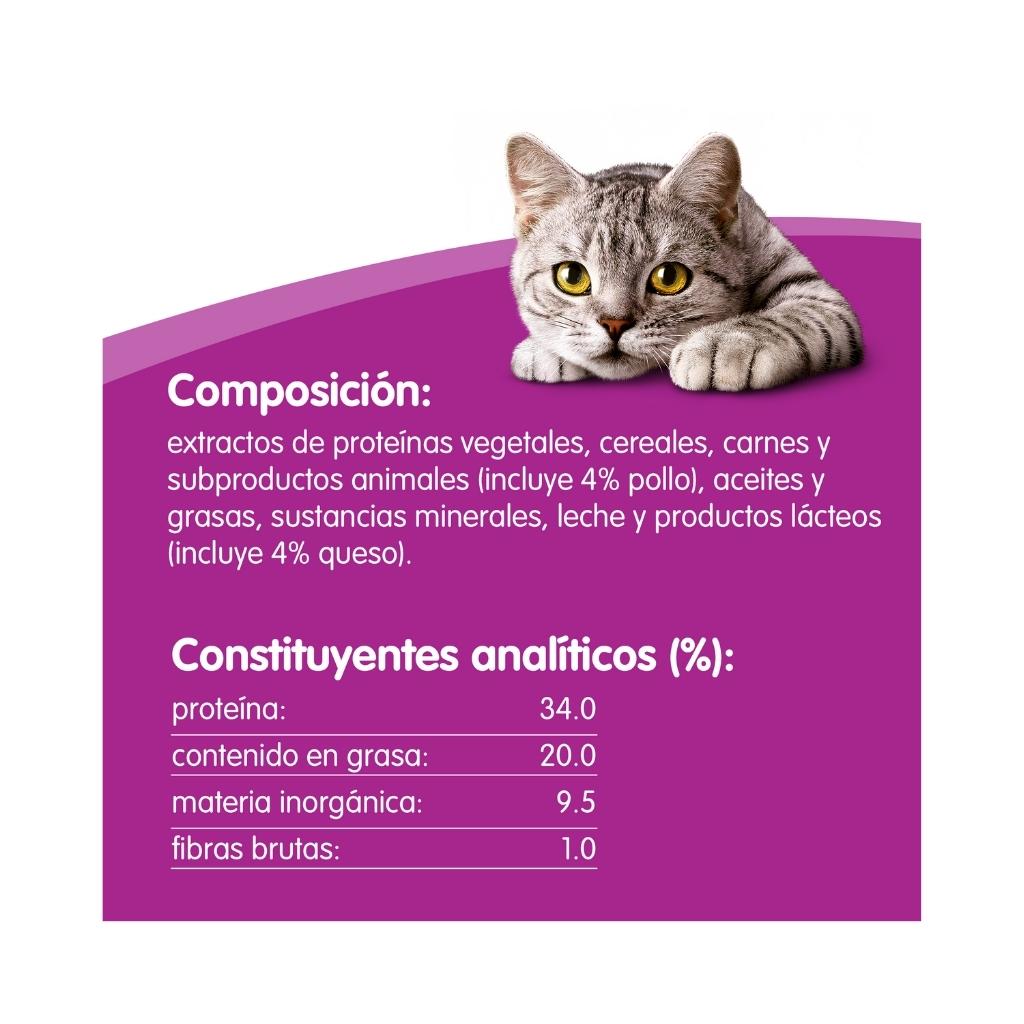 - Toda la calidad de la comida para gatos WHISKAS y el mejor sabor a pollo.