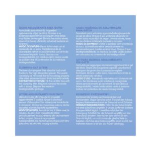 - Elimina los malos olores, reseca las heces y limita la actividad bacterial en la arena.
