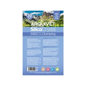 Lecho aglomerante para gatos, a base de gel de sílice al que se le ha añadido la propiedad aglomerante, absorbiendo los malos olores y ayudando a eliminar las bacterias.
