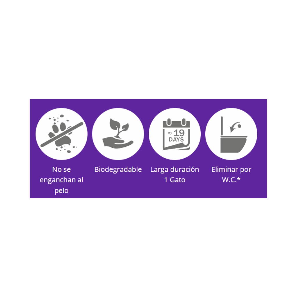 - Cambio completo del arenero: La limpieza semanal del arenero para gatos es cosa del pasado. Dura hasta tres semanas.