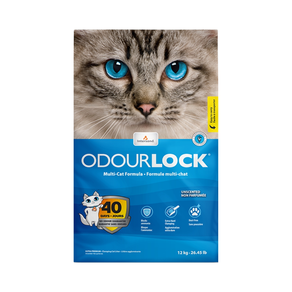 Gracias a su tecnología patentada, nuestra arena OdourLock neutraliza la formación de amoniaco para controlar de forma inigualable los olores de la orina y de las heces. La orina de los gatos no contiene amoniaco en sí, sino que este se forma en la bandeja de arena cuando la orina entra en contacto con el oxígeno y produce bacterias. El amoniaco es el responsable del olor desagradable que tiene la bandeja de arena. Nuestra tecnología se activa cuando entra en contacto con la orina para neutralizar los olores durante más de 40 días. OdourLock es perfecta para un entorno en el que viven varios gatos: tan solo retire los desechos una vez al día para una higiene óptima que les encantará a usted y a sus gatos.