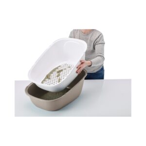 - WC extra espacioso para gatos más grandes y/o con varios gatos sistema de división higiénico: 2 bandejas y un colador.