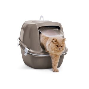 Arenero de aseo con rejilla para gatos grande contenido: 1 parte superior, 4 presillas, 1 asa, 1 tapa de filtro, 1 filtro de carbono, 1 rejilla y 2 bandejas cerrados.