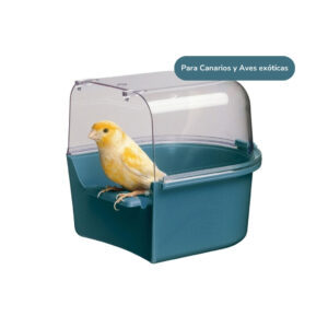 Es una bañera para canarios y aves exóticas que permite que sus amigos emplumados puedan bañarse en total tranquilidad. Tiene una gran base con llanta especial para contener el agua y una útil percha de aves. Además, está equipado con una cubierta transparente y la apertura de un lado, para evitar que el agua salpique hacia fuera