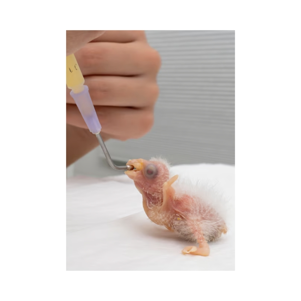 Ideada para la cría manual de polluelos de psitácidos frugívoros durante la primera fase de la etapa neonatal (desde la eclosión hasta los 7-8 días de vida).