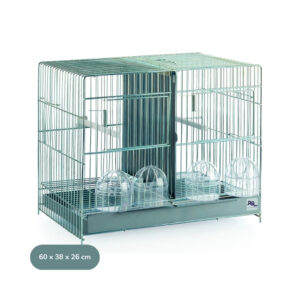 Su fabricación ha sido hecha con materiales muy resistentes y duraderos, con una estructura de metal muy firme, barrotes de alambre muy estrechos para evitar posibles escapes y con dos compartimentos en su interior con la capacidad de alojar hasta 2 parejas reproductoras.