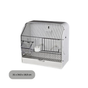 - Viene equipado con 1 comedero, 1 bebedero, 2 perchas.