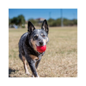 - Pelota de caucho Kong Classic Red Rubber para el juego de buscar y recoger.