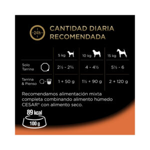 - Las Tarrinas Cesar Classic en paté son un menú completo, cuidadosamente preparado con ingredientes naturales y sanos que a tu perro le encantarán. Recetas completas que asegurarán una dieta sabrosa y llena de nutrientes para un perro feliz. Porque tu perro se merece lo mejor, en Cesar nos aseguramos que puedas compartir lo mejor con tu mejor amigo, para así fortalecer el vínculo que os une. Nuestra filosofía contempla una dieta completa y natural para tu mascota, llena de sabor y sostenible, para cuidarle a el y el mundo donde vive.