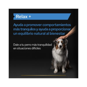 Relax + ayuda a promover comportamientos más tranquilos y ayuda a proporcionar un equilibrio natural al bienestar de tu perro cada día. Contiene niveles eficientes de ácidos grasos omega-3 (EPA y DHA de aceites de pescado) que se ha demostrado que: