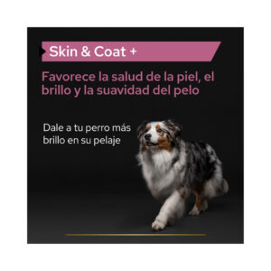Skin & Coat + nutre la piel y el pelaje de tu perro desde el interior gracias a su contenido en nutrientes esenciales tales como ácidos grasos omega-3 y omega-6 procedentes del salmón noruego, aceite de linaza y vitamina E, y está científicamente diseñado para:
