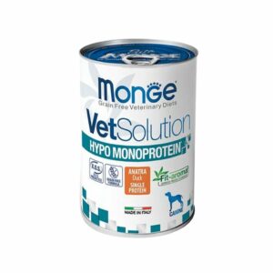 La formulación se caracteriza por una fuente seleccionada de proteína (pato) y un número limitado y fuente seleccionada de carbohidratos (almidón de patata).
